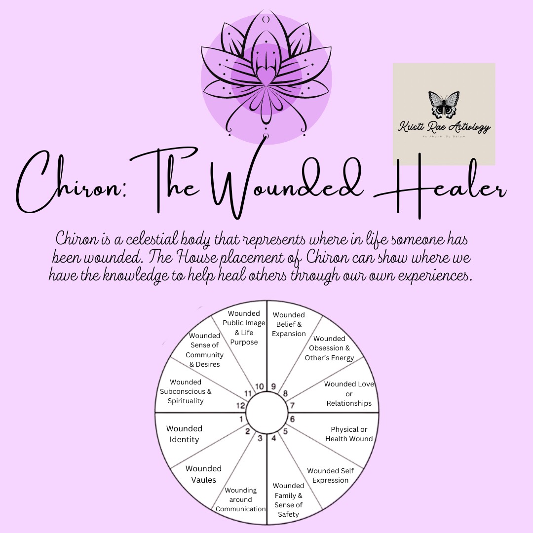 Chiron is the mythological "wounded healer," adapted in astrology. This beautiful PNG graphic shows ways Chiron can help us heal, depending on where it is in our chart. Beautiful to have on hand, or share with friends.